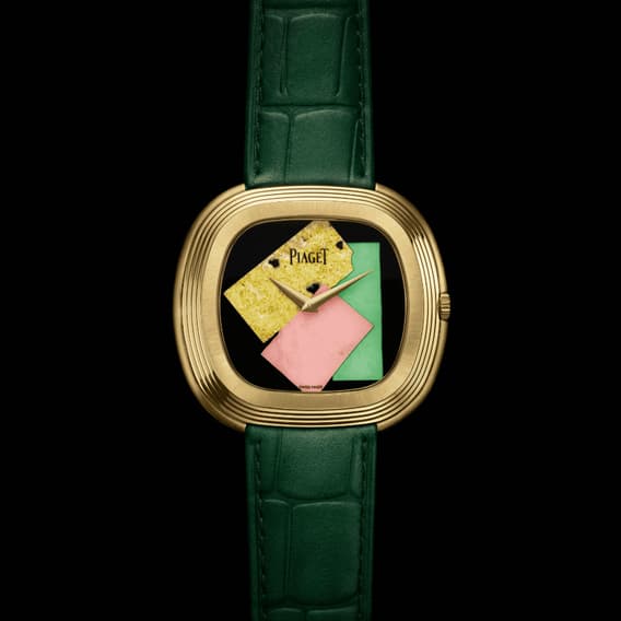 Piaget伯爵Andy Warhol玫瑰金腕表,搭配孔雀石表盤